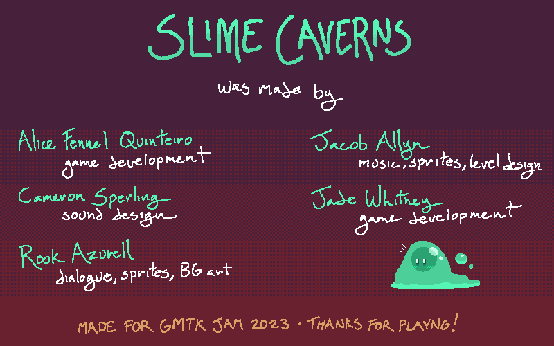 Slime Caverns was designed for the GMTK Game Jam 2023, ROLES REVERSED.